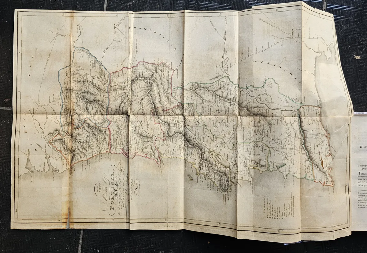 T. Egerton, 1810, 1ª edição. “with a military map of the country; to which is added, a sketch of the mannners and customs of the inhabitants, and principal events of the campaigns under Lord Wellington, in 1808 and 1809.” Encadernação nova, sem a capa da brochura. Livro em muito bom estado de conservação. Mapa com alguns restauros. Assinatura de posse na página de rosto e Ex Libris de antigo proprietário no verso dela. 244 páginas.