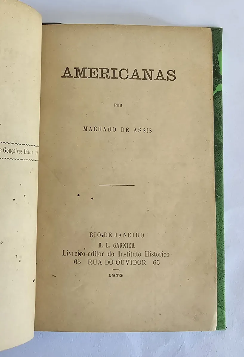 B. L. Garnier, 1875, 1ª edição. Encadernação nova, sem a capa da brochura. Livro com alguns furos atingindo as 20 primeiras páginas, sem dano à interpretação do texto. Demais páginas em muito bom estado de conservação. 210 páginas.