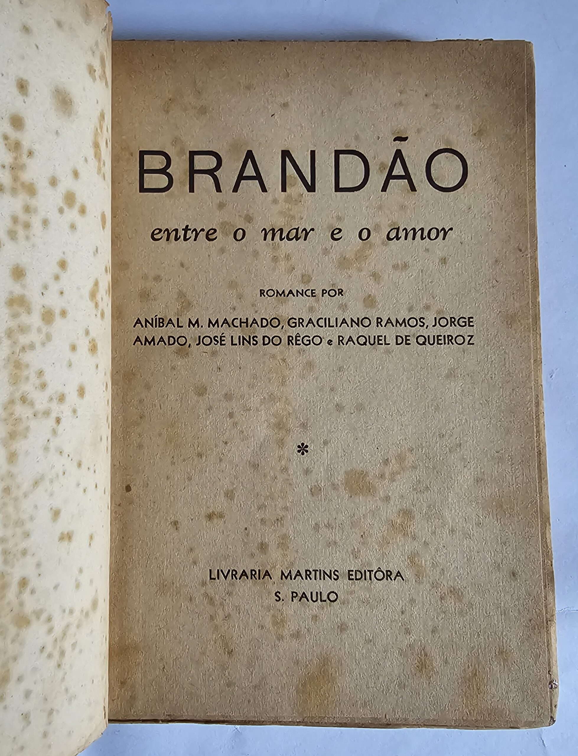 Martins, 1942, 1ª edição. Romance escrito por Aníbal Machado, Graciliano Ramos, Jorge Amado, José Lins do Rego e Raquel de Queiroz. Brochura. Livro em bom estado de conservação, apenas com as páginas amareladas e manchas decorrentes da acidificação do papel. 154 páginas.