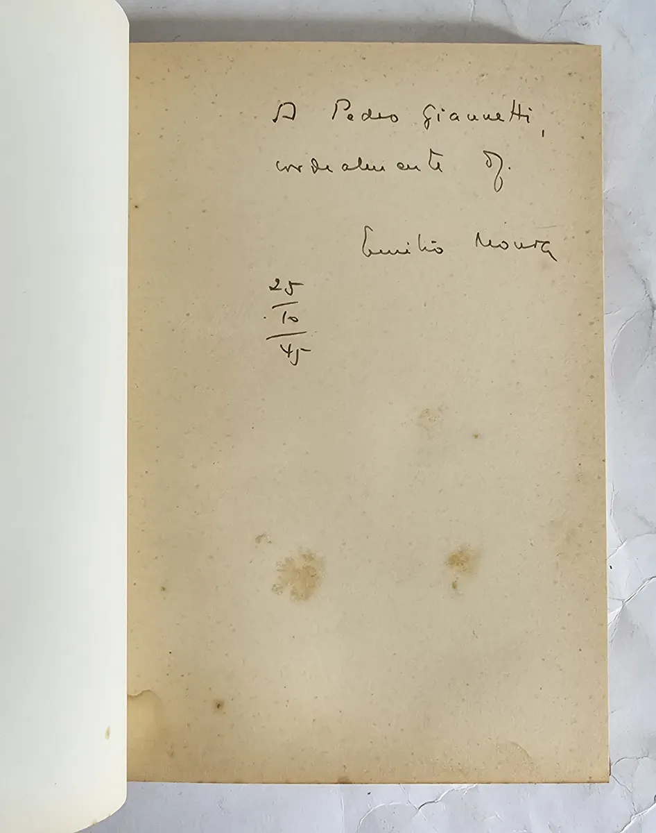 Edições do Trevo, 1945, 1ª edição, com dedicatória do autor. Encadernação nova, sem capa da brochura. Livro em uito bom estado de conservação, apenas com uma mancha na margem inferior das últimas páginas, fora do texto. Tiragem de 300 exemplares. 140 páginas.