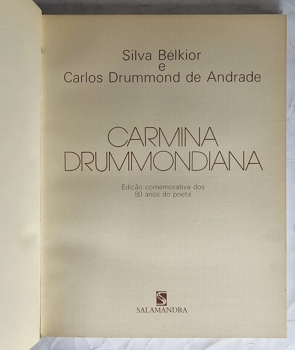 Salamandra, 1982, 1ª edição, com dedicatória de Silva Bélkior, assinada por ele e Carlos Drummond de Andrade. Edição comemorativa dos 80 anos do poeta. Encadernação editorial com sobrecapa. Livro em muito bom estado de conservação, apenas com alguns desgastes na sobrecapa. Ilustrado. 143 páginas.