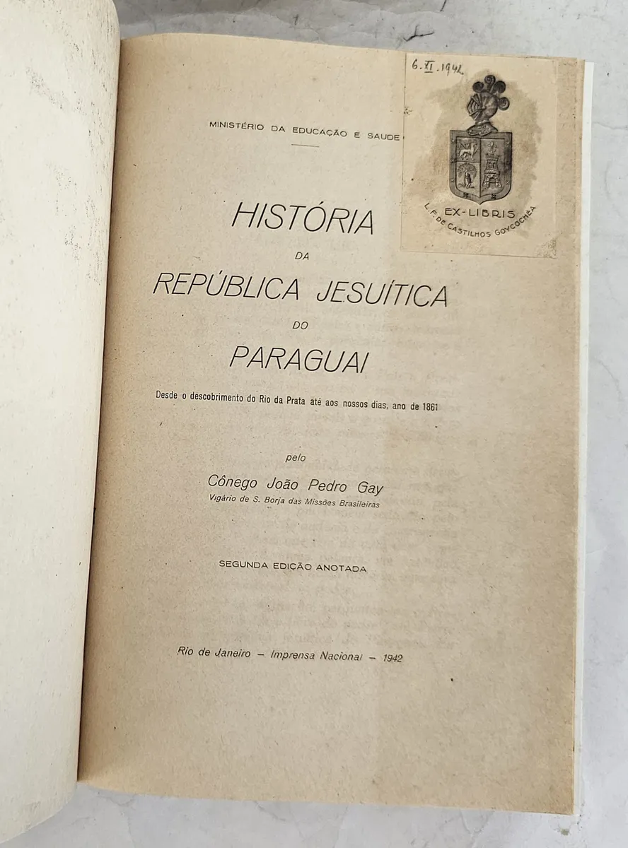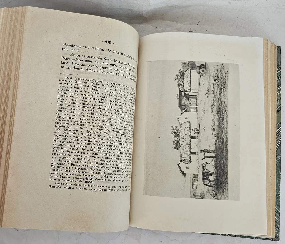 Imprensa Nacional, 1942, 2ª edição, anotada. “Desde o descobrimento do rio da Prata ate aos nossos dias, ano de 1861.” Encadernação antiga, lombada em couro, preservando a capa da brochura. Livro em muito bom estado de conservação. Ilustrações e mapas em preto e branco. Ex libris do escritor Castilhos de Goycochéa na página de rosto. 644 pp. + 53 pp. de notas.