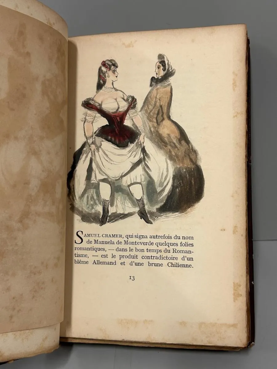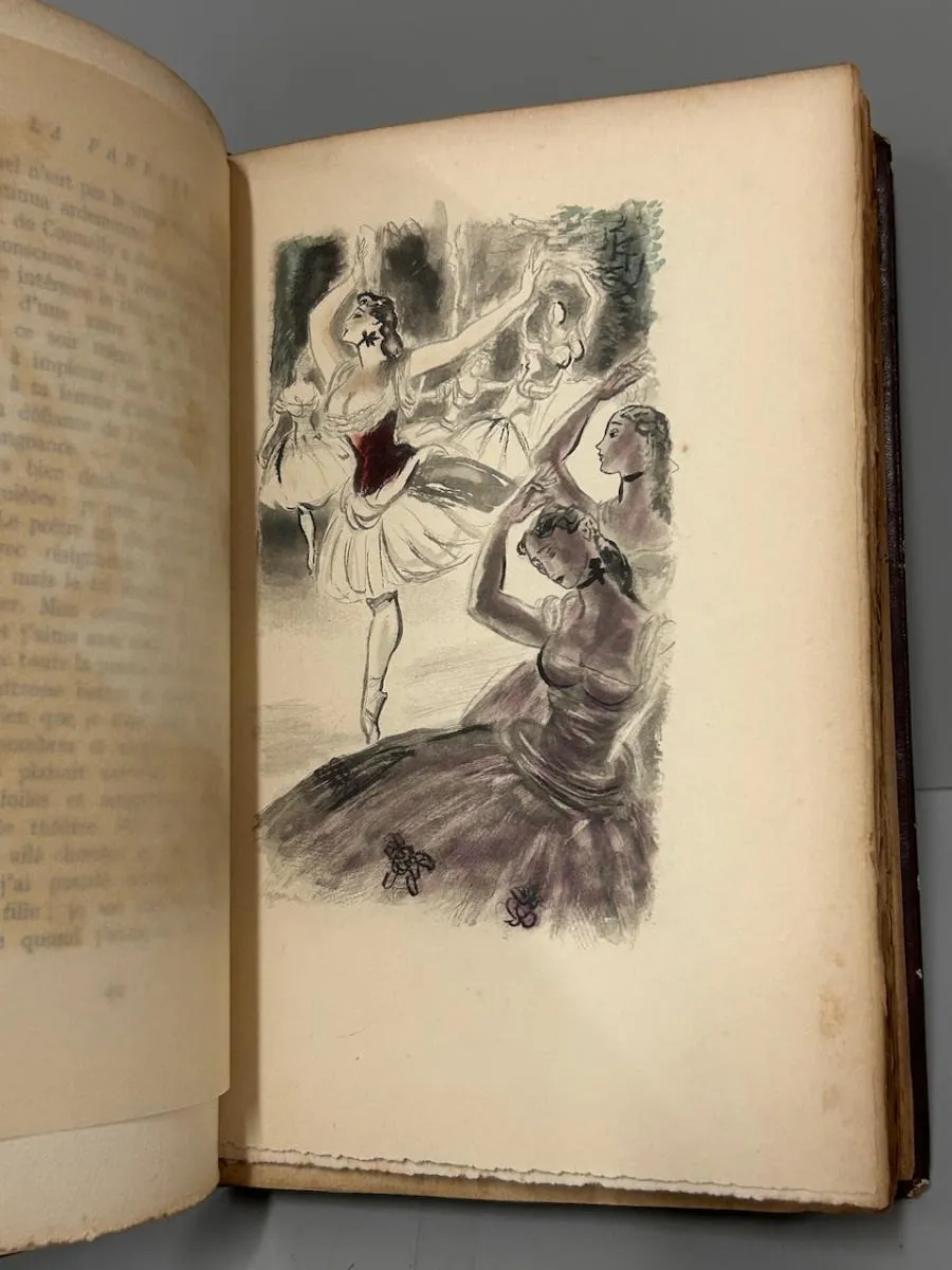 Les Éditions André Vial, 1947. “Choix de Maximes Consolantes sur L’ Amour.” Eaux-Fortes originales de Berthommé Saint-André. Exemplaire sur Lafuma Nº 1401. Encadernação antiga em pleno couro, preservando a capa da brochura. Livro em bom estado de conservação, apresentando apenas alguns desgastes na lombada e o amarelecimento natural do tempo. 143 páginas. 15 x 23,5 cm.