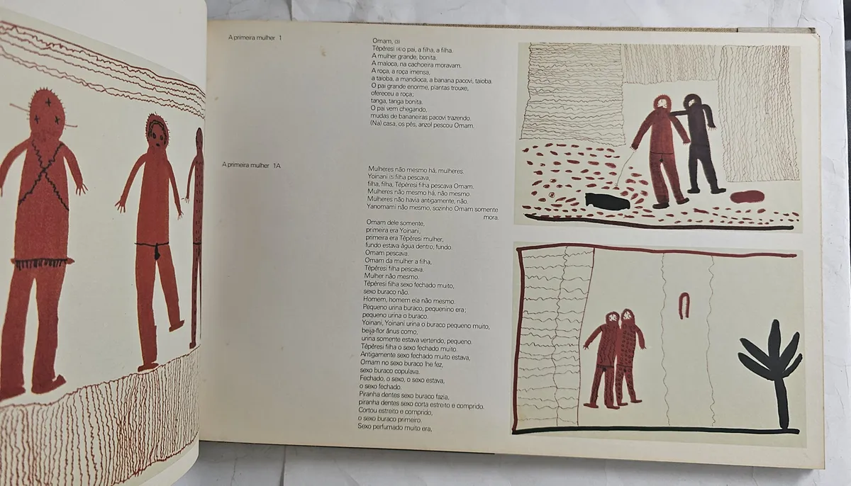 Olivetti, 1978, 1ª edição. Pesquisa e fotos de Claudia Andujar. Introdução de P. M. Bardi. Concepção e projeto gráfico de Emilie Chamie. Edição trilíngue: Português, Inglês e Italiano. Obra feita a partir da narrativa e desenhos de Koromani Waica, Mamokè Rorowè, Kreptip Wakatautheri. Trabalho que compila a obra documentária da fotógrafa Cláudia Andujar, a respeito dos índios Yãnomam. Encadernação editorial com sobrecapa. Livro muito bom estado de conservação, apenas com uma mancha na capa. 28 x 41 cm.