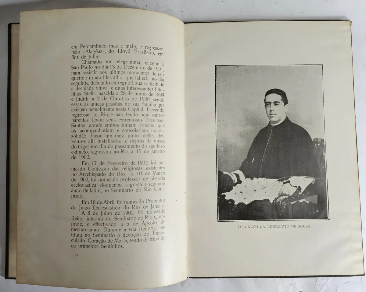 São Paulo, 1918, 1ª edição. Homenagem ao 3º Bispo do Espírito Santo. Encadernação antiga, sem a capa da brochura. Livro em muito bom estado de conservação, apenas com uma mancha na margem de algumas páginas. Ilustrado com fotografias. 47 páginas.