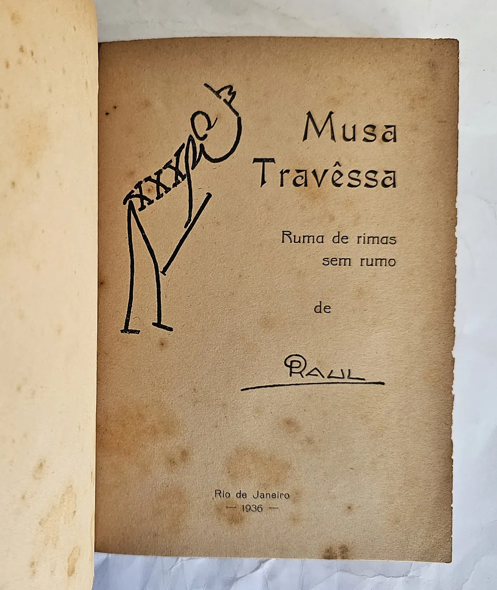 Rio de Janeiro, 1936, 1ª edição, com dedicatória do autor. Encadernação nova, preservando a capa da brochura. Livro com um reforço de fita adesiva na junção da página de anterrosto com a lombada, e as páginas amareladas devido ao tempo e à má qualidade do papel. 142 páginas.