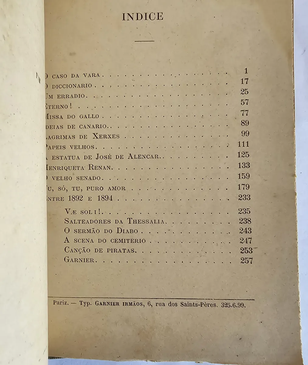 H. Garnier, 1899, 1ª edição. Encadernação original da editora. Livro em muito bom estado de conservação, apresentando apenas o amarelecimento natural do tempo. 262 páginas.