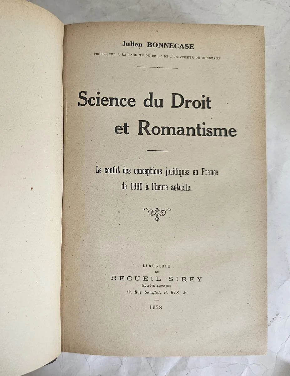 Recueil Sirey, 1928, 1ª edição. Encadernação antiga, sem a capa da brochura. Livro em bom estado de conservação, apenas com as páginas naturalmente amareladas e sem a proteção do canto superior da contracapa. 745 páginas. Medidas: 23 x 15 cm.