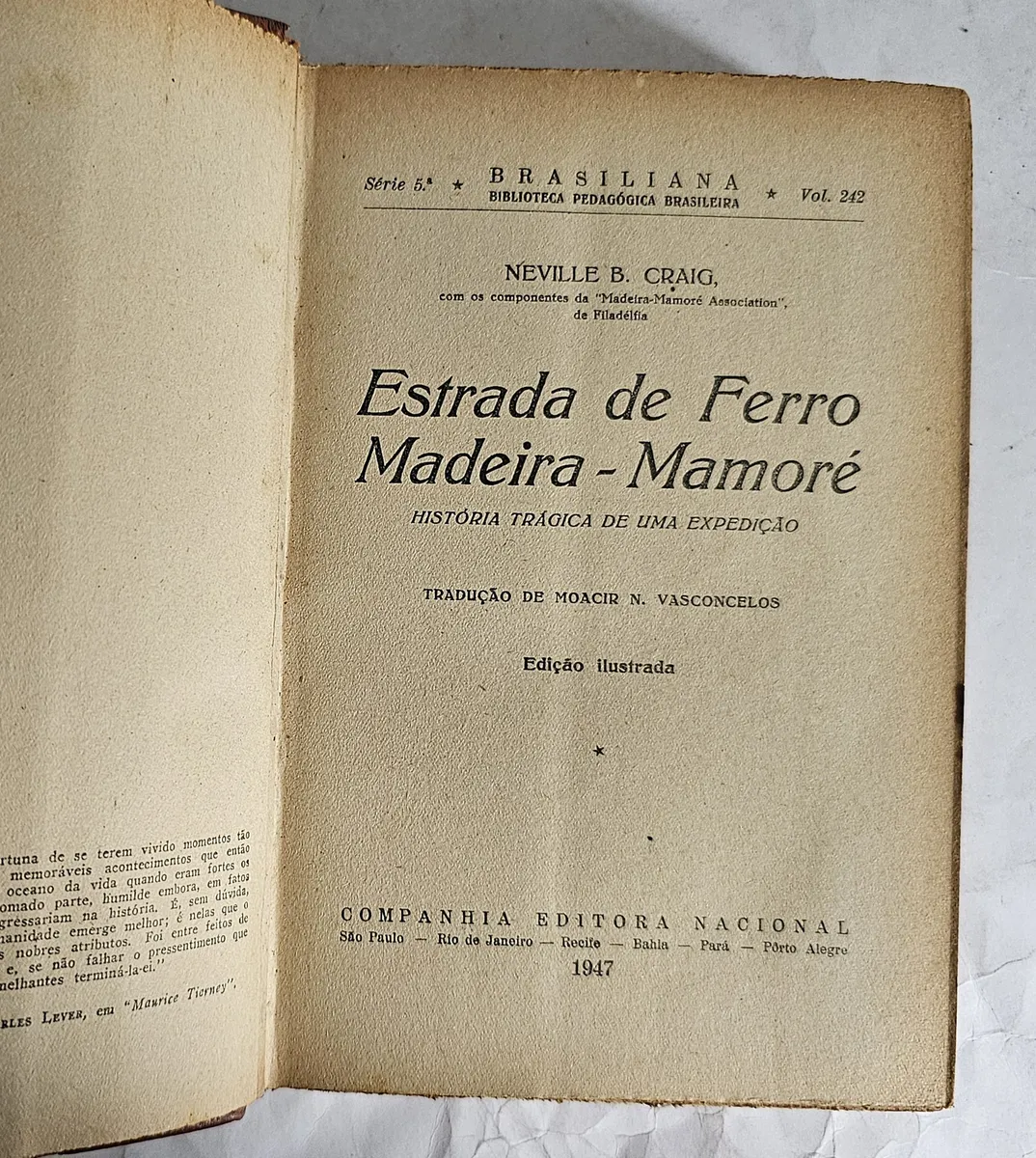 Companhia Nacional, 1947, 1ª edição. “História trágica de uma expedição.” Bonita encadernação antiga, lombada e cantos em couro, preservando a capa da brochura. Livro em bom estado de conservação, apresentando apenas o amarelecimento natural do tempo e da má qualidade do papel. Mapas anexados. 449 páginas.
